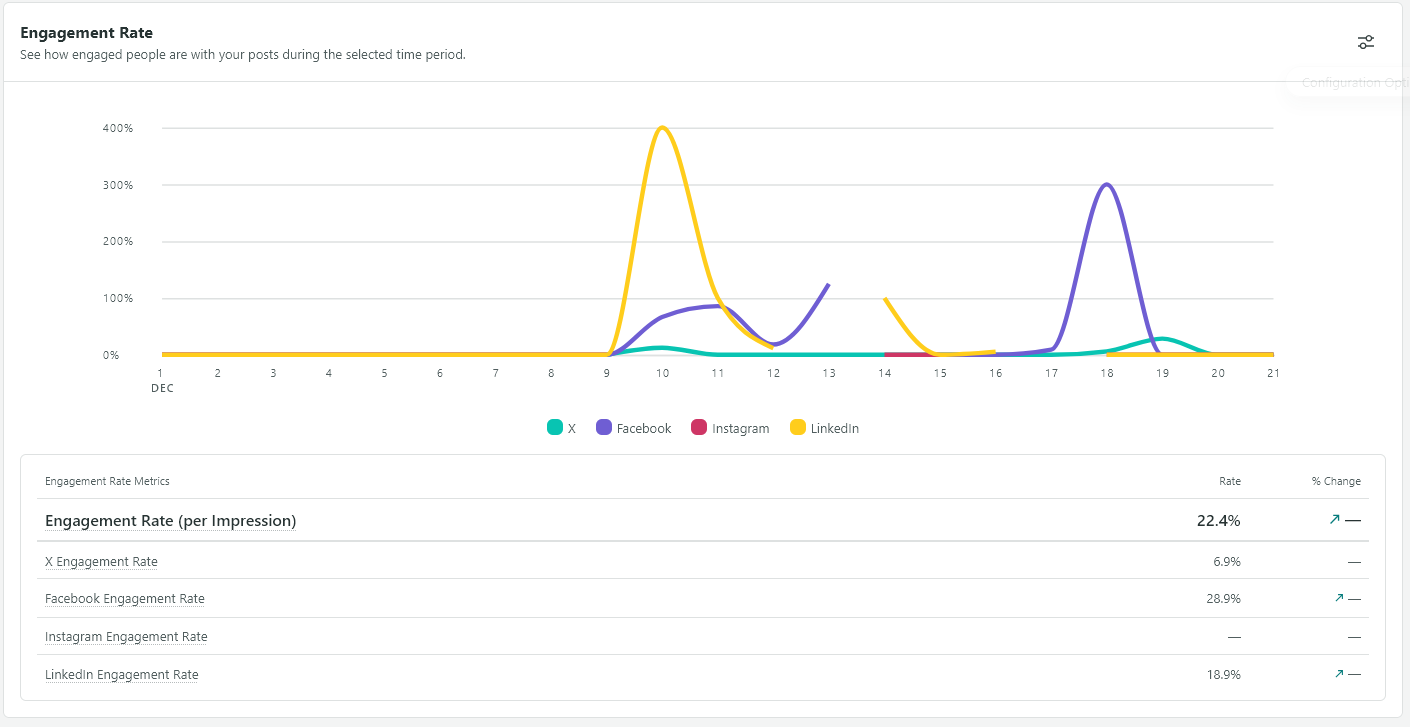 Below are snapshots from a sprout social coordinated social media content campaign for the daily gripe, across Twitter, Instagram, Facebook, & Linkedin during the middle part of the month of december, 2025.